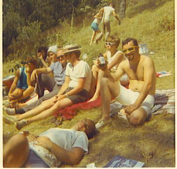The author "resting" on the hillside in Canada corner with Bunky in the blue shirt, Ernie, Karen, and Jack As expected, Denny Hulme took the pole in his 465ci aluminum Chevy powered machine at 2:10.6, 110.260 mph. His pole qualifying time was a full four seconds slower than last year’s, largely due to the FIA ban on the high wings. The cars still had wings but they were affixed directly to the chassis. While they still provided significant down force, they produced far less than the high winged versions that acted directly on the suspension. When the dust settled from qualifying, we were surprised to see it would not be an all orange McLaren front row. Hulme was on the pole, but Peter Revson had put his Lola on the outside of the front row. Lothar Motschenbacher had his ex-works M8B third on the grid and David Hobbs, who had taken over Jerry Titus’ vacant seat, had his McLaren M12 in fourth. Peter Gethin had only managed to get sixth spot on the grid. This was the first time we had seen a works McLaren that far down the field at the start. I was prejudiced, of course, but I was sure that if Gurney was still with the team, it would have been an all orange McLaren front row as usual. Still, I was surprised Gethin was that far back. In addition to the Can-Am qualifying, Saturday’s entertainment included a non-championship 80-mile Formula B race. This turned out to be a one-two for Fred Opert’s drivers, Mike Eyerly and Alan Lader, who were the class of the field, while Opert himself finished 5th. The Formula B race notwithstanding, the talk amongst us as we headed back to Old Man Miller’s Field was the poor qualifying effort of the second works McLaren in the hands of Gethin. I cautioned my friends not to write him off as he had won the very competitive British F5000 the year before in 1969, as well as having won the pole position and led several laps at last years RA F5000 race until electrical gremlins caught up with him. On top of that, he had been given Bruce McLaren’s seat on the McLaren F1 team. Someone thought the guy could drive. Along the south side of Old Man Miller’s field was an electric fence separating the camping area from his dairy cow pasture. This was there more to keep the cows in the pasture than it was to keep us campers out. I remember a guy from the group camped near us crawled under the fence and headed down the hill towards the cows. One of his buddies asked another where he was going. "I think he is going to try and slip into a Jersey," was the reply. That was more than I wanted to know, so I went back to setting up my tent. We usually camped along the south side of the field, pitching our tents along the electric fence. Old Man Miller kept the fence charged on race weekends despite the potential problems it posed for the campers. One night a guy camped near us went behind the tents to take a leak. He learned the fence was charged when he peed on it, and his shrieks informed the rest of us. The thing was, you could not see the fence very well in the dark, so this type of accident happened more than once. Fortunately, none of our group ever had the misfortune of peeing on the fence, but then Bunky found a new way to test it. It was not uncommon for Bunky to barf; in fact it was a rare race weekend when he didn’t. This normally occurred early in the morning, so Tom was usually the only one around to see it, unless my brother Greg was there. Greg used to follow Bunky around with a camera in the morning, hoping to capture such an event on film. This was not as easy as one may think since Bunky would often barf before dawn - or at least before Greg was up. Greg even took to getting up earlier so he would not miss it. Then one morning, it all came together for him. There was Bunky, doing the technicolor hurl, and Greg was there with his camera. Greg gleefully snapped away only to discover later he had forgotten to put film in the camera. Since a Bunky barf was usually an early morning event, those seated around the campfire that night were somewhat startled when Bunky, appearing to be in some distress, jumped up and ran back behind the tents. I know I was startled by his sudden arrival since I was already back there being very careful of my aim. Bunky skidded to a stop and bent over just as the contents of his stomach erupted from his mouth in a steady stream, right onto the top strand of the electric fence now only a couple of inches away from his mouth. He instantly let out a hideous shriek as the electric current from the fence played across his tonsils. You would think he would have jumped back away from the fence, or at least turn away from it, but not our Bunky. He just launched a second volley, closely followed by another shriek as the current hit him again. This was repeated two more times as Bunky would barf and shriek and barf and shriek again before he finally emptied his stomach. At the first shriek, the others instantly knew what was happening and came running. We watched in amazement as Bunky repeatedly tortured himself by barfing on the fence. After all, Bunky was the only one of us that grew up on a farm and should have known better than any of us what would happen. We all felt bad for him, but he was not really injured and it was just too damn funny, so we laughed and teased Bunky about it the rest of the night. This was the stuff of legends, and we have laughed about it a hundred times at least since then. The next morning, we made our way back down the hill in Canada Corner. Predictably, Bunky was not feeling well and had already emptied his stomach again that morning. All of our jokes about his encounter with the electric fence were not helping him either. We got to the track a little later than usual, and our favorite spots half way down the hill were taken. We liked to sit half way down the hill because it shortened the climb to the john and lessened the chance of having an empty beer can bounce off the back of your head. We decided t