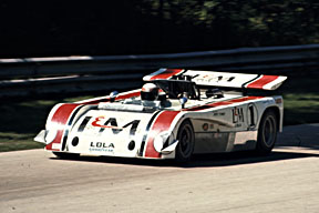 In July of 1971 the gang, which now included Liz, was back in Old Man Miller's field on Friday night before the Trans Am and F5000 weekend. I was sure Liz would enjoy this weekend because it would be the first time she would see top professional drivers in state-of-the-art racecars. I had told her all about the likes of Donahue, Follmer, Revson, Hobbs and Posey. She already knew about Jerry Hansen. As we were pitching our tent I was pleased to see Eric pull in with a friend of his. Eric’s pro football career in Canada had ended and, still loving the game, Eric played semi-pro football with a couple of teams in the Chicago area for the next few years. Now back in the Chicago area, Eric invited a couple of his teammates to come up to Road America. A few of them took him up on it. Some enjoyed it enough that they brought other friends the next year. The biggest and most memorable of Eric’s teammates was Big Ralph. Nobody ever called him Ralph - it was always Big Ralph. As you might imagine, Big Ralph was big. No, he was HUGE! He was about 6’ 4" and tipped the scales at around 380 pounds. The amazing thing about him was that, despite his size, he was as quick as a cat. He could not run fast, but with his first couple of steps off the line he could beat anyone. He was a defensive lineman, and made opposing offensive linemen miserable with his quick moves. Big Ralph was also as strong as an ox. I recall one night when we were at a post game party in a downtown Chicago hotel. There was a young lady Big Ralph was attracted to, but she wanted no part of his advances. Finally, she took to hiding in a closet to avoid him. This upset Big Ralph who, rather than opening the door, vented his frustration by punching a hole though it with his fist. She started screaming, people started yelling, and Eric and I decided it was time to get Big Ralph out of there. He went willingly, but punched a few more holes in the walls as we went down the hallway. On our way to our parked cars, we started across State Street just a moment before the light turned green for our direction. We were only a few feet into the intersection when we heard tires squealing. Coming from our left was a Volkswagen Beatle, brakes locked up, heading right for Big Ralph. He just stood there and glared at the approaching Bug while Eric and I leaped for safety. The car came to a stop, but not before just nudging Big Ralph with its bumper. The car was occupied by a young couple who were staring in horror at the giant in front of them. Big Ralph said nothing and just stared at the couple in the Beatle for a few moments. Then he bent over and grabbed the car’s front bumper. He effortlessly picked up the front of the Beatle until its front tires were about two feet off the street. Then he turned the car sideways in the lane, set it down again and walked off across the street. This was Big Ralph’s first time at Road America, so Eric introduced Big Ralph to everyone. We sat around the campfire and partied as usual. I could see that Big Ralph was enjoying himself, and seemed to really hit if off with Jimmy. Big Ralph had an engaging personality and it was hard for people not to like him. While 1970 had been a vintage year for Trans Am, the opposite was true just a year later. All of the factories, except American Motors, had pulled out of the Trans Am. Penske was running just one factory-supported car for Donahue. Bud Moore still had two Ford Mustangs in the series for George Follmer and Peter Greg, but he was running without factory support. Most of the field was made up of independents and local club racers. As a result, there was the predictable finish with Donahue leading the pack, Follmer second, Jerry Thompson third and Gregg fourth. The season was a breeze for Donahue, who won seven of the ten races with Follmer taking the other three. Follmer won two of those in one of Bud Moore’s Mustangs and the third in a Roy Woods Javelin. Naturally, AMC won the manufacturer’s title after winning eight of the ten races. We headed back to Old Man Miller's field and got ready for the evening. This included a hunt for firewood for the evening’s campfire. Nowadays, when you camp at the Gun Club or wherever, a guy will usually drive up in a beat-up old pickup, selling firewood out of the back. Five bucks gets you enough firewood for the whole evening. However, when we were still camping at Old Man Miller’s field, no one had thought of this money making scheme so we were on our own for getting firewood. We would just comb the nearby pastures and collect dead branches and usually could find plenty. That evening back at Old Man Miller's field, Big Ralph volunteered to go look for firewood. He was back soon, with an armload of fence posts, still trailing the barbed wire they had been supporting. We asked him where he got them. He pointed to a field across the road and said they were just sticking up out of the ground. We quickly hid them behind the tents until dark, and explained to our city boy that he could not be ripping farmer’s fences out of the ground. He said he had not seen any cows on either side of the fence, so he figured it was no longer needed. Sunday morning, we had just settled in on Canada Corner and opened the first beer of the day when we heard something growling behind us. There, at the top of the hill, was a big hairy guy with a full beard, dressed like a caveman wearing some sort of animal skin. He had on a huge fur hat with Viking-style horns on it and leather, fur-trimmed boots. He looked like something out of a "Conan the Barbarian" movie. He also had a collar around his neck, and another guy was leading him down the hill on a leash, with him growling and snarling at everyone near him. Two more guys carrying a big cooler followed them. When they took up residence near us, I asked the guy holding the leash, "What the heck is that?" pointing to the horned creature squatting next to him. "I am not sure what it is," he re
