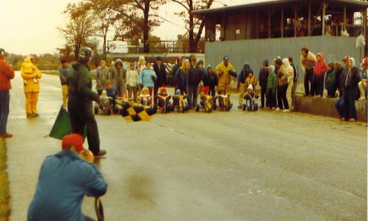 Pat, the girl I had shared the addendum kiss with on the rally, had apparently really enjoyed her first race working corners. I had taught her how to work the phones that first weekend we met and she caught on very quickly. It was not long before she had joined Chicagoland. She became very active in the club and was soon on the board of directors. The North Suburban Sports Car Club (NSSCC) held the last race date of the season each year. Most races in Council were not more than half an hour long. NSSCC’s race was an hour long and they called it "The Enduro". There was a lot of competition and even some bad blood between NSSCC and Chicagoland in those days. I am not sure why, but it may have something to do with the fact that NSSCC had most of the drivers and Chicagoland had most of the race staff. I think NSSCC hated having to ask Chicagoland to staff their races for them. It was nothing personal, because members of the two clubs were usually good friends and heck, Pat and Ray an NSSCC member were even dating. At one Chicagoland Board meeting, the directors decided to compete with NSSCC and hold a long race of their own, only it would be much longer. The club had the date for the first race in October and decided to make it a 55-lap race, or a one and a half hour event. Long races had to be held at the end of the season because they were hard on equipment. If a guy’s car broke at the end of the season, he had plenty of time to fix it. The length of the race decided, they needed a name for it. The Enduro was taken, so they could not use that. As they pondered this, Pat said, "Why don’t we just call it ‘The Long Race’" and so it became. The first few years, they added an "o" to the name each year, so the second year it was called "The Loong race," then it was "The Looong race". This soon became cumbersome, so the club settled on 4 o’s, and from then on it was "The Loooong Race." This again was Pat’s idea. Pat agreed to be registrar for the first long race. At a board meeting, the Board was discussing the merits of letting people with no ties to the Midwestern Council into the race. Pat said, "I won’t turn away anyone with $3." Some of the Board members took this comment in a way Pat had not expected, much to her dismay. Everyone else thought it was pretty funny. The event proved to be very popular because with a race that long, it was easy to co-drive it. Most cars had to make a pit stop to refuel anyway, so it was no big deal to change drivers. You had to race at least once a year to keep your competition license current, and a lot of guys, including me, kept their license a few years longer that way. Being the first weekend in October also placed it a week or two before the SCCA Runoffs. Many SCCA National drivers would enter The Loooong Race to use it as a test session before heading to Road Atlanta for the Runoffs. When I first started working corners, a gal named Judy was running Central Control. Central Control is the nerve center of the track and runs all the communications from the corners to stewards to grid, etc. Whenever something happens on a corner, the phone person calls in to Central Control and reports it. Should a corner need an emergency vehicle, they tell Central Control which dispatches the necessary equipment. Things can get very hectic in Central Control very quickly, so it takes a cool head to handle it. Judy was very good at it and as it turned out, so was Pat. Pat took over Central Control when Judy decided to step down, and held that position for about five years. It was Pat who suggested that Liz and I get more active in the workings of Chicagoland. We agreed, and soon we were doing the monthly newsletter "The Downshift". I would write it, and Liz would edit and type it. Duke of Mr. Duke’s had given us a stencil machine. Liz would type the newsletter onto stencils and I would put them on the machine and print out it out. Two other club members, Stan, and his wife, another Judy, would come over and help us collate, staple and paste address labels on the newsletter. Somewhere, I came into possession of an electric stapler and Stan loved using it, so that was always his job. Once The Downshift was done, we would play a board game or two, like Speed Circuit or something we referred to as marbles. I do not recall the real name of the marbles game, but that was Stan’s favorite and we played it often. Not long after we began doing the Downshift, I was elected to the Chicagoland Board of Directors. Liz and I volunteered over the next few years to do other jobs as well. I served as Banquet Chairman, Picnic Chairman, Race Chairman and Chief Steward. I also served a couple of terms as President of the club. Liz was Race Registrar for several races, and served a couple of years as Membership Chairman and, of course, helped me with the banquets and picnics. Chicagoland had become a huge part of our lives. When the club was looking for a new place to hold our monthly membership meetings, I suggested my old favorite watering hole, Mr. Duke’s. Mr. Duke’s became Chicagoland’s home for many years and we held several annual awards banquets there as well as the monthly meetings. Once a year, NSSCC, at their Enduro race, held a bike race around Blackhawk Farms during the Sunday lunch break. This was a popular event and consisted of two laps around the 1.9 mile track. I thought we should have something similar for The Loooong Race and came up with the idea of a Big Wheel race for the kids. NSSCC’s bike race was fine, but was more for adults and bigger kids. The Big Wheel race would be for little kids 6 years old and under. The club thought this was a good idea and we went ahead with it. We split the kids into age groups and had them race around pylons on the front straight. The winners of each age group got a nice plaque and everyone in the race received a prize. The Big Wheel race was a huge success. We made it as much of a real race experience as we could